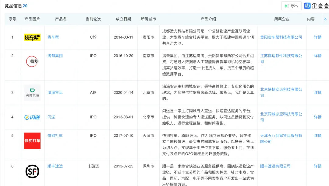 与此同时,美团、满帮等互联网巨头也纷纷入局:满帮集团(主营车货撮合、跨城业务)已于纽交所上市,并计划在港募集资金约10亿美元。
