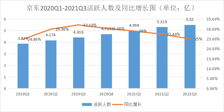 首先,先来看京东营收增长了25.5%;财报数据显示,京东集团第三季度营收为2187亿元,较去年同期的1742亿元同比增长了25.5%,超出市场预期的2153亿元;税息折旧及摊销前利润为59亿元,同样超出市场预期的45.4亿元。