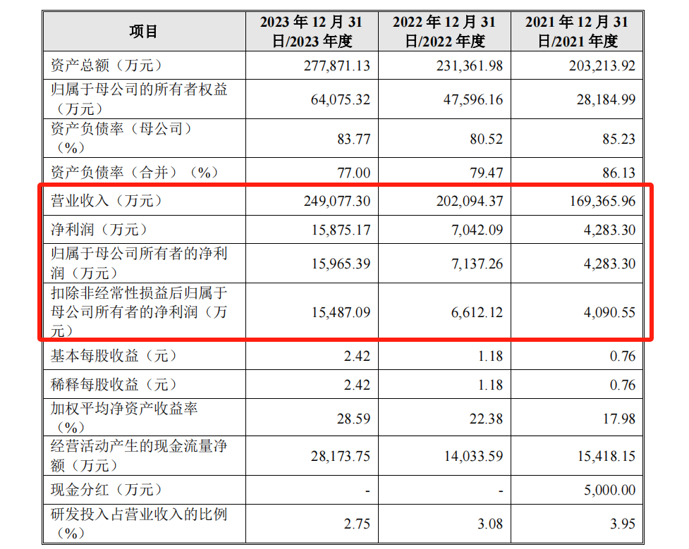 2021-2023年,毓恬冠佳营业收入分别为16.94亿元、20.21亿元、24.91亿元,净利润分别为4283.3万元、7042.09万元、15875.17万元,业绩持续攀升。