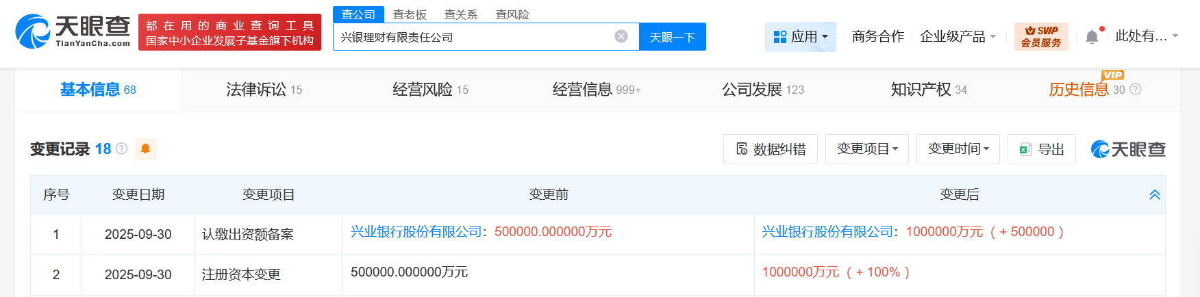 天眼查App显示,近日,兴银理财有限责任公司发生工商变更,注册资本由50亿人民币增至100亿人民币,增幅100%。