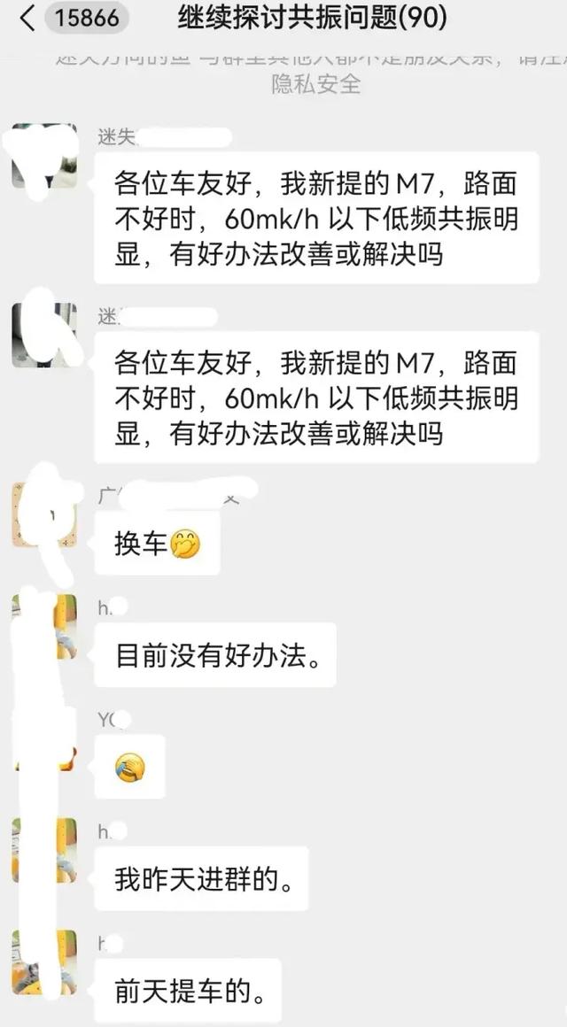 值得注意的是,随着投诉人数的不断增加,车主们已经自发组建了一个名为《探讨共振问题群》的微信群组,群内成员近90人,每天都在讨论如何改善或解决问界M7的低频共振问题。然而,面对这一普遍存在的问题,车主们却感到无助和失望。