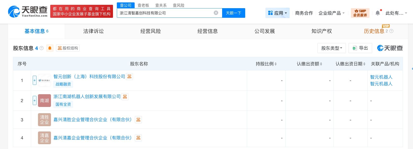 天眼查工商信息显示,近日,浙江清智嘉创科技有限公司成立,法定代表人为李海波,注册资本1000万人民币,经营范围包括人工智能应用软件开发、智能机器人的研发、智能机器人销售、工业机器人销售、伺服控制机构制造等。股东信息显示,该公司由智元机器人关联公司智元创新(上海)科技股份有限公司、浙江南湖机器人创新发展有限公司、嘉兴清胜企业管理合伙企业(有限合伙)、嘉兴清嘉企业管理合伙企业(有限合伙)共同持股。