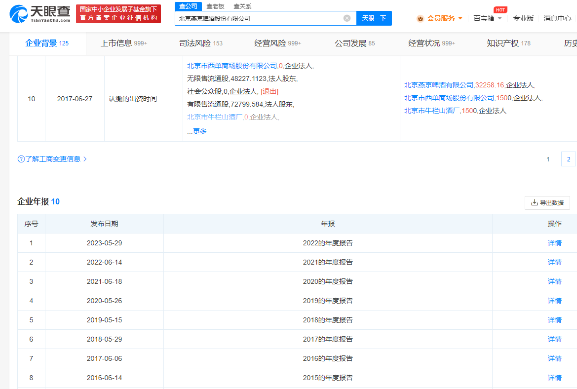 但或许是受当年燕京啤酒董事长赵晓东违法被抓的负面影响,又或者是王一博的带货能力不足,天眼查APP数据显示,2020年燕京啤酒交出了一份营收同比下滑4.71%、净利同比下滑14.32%的不及格“成绩单”