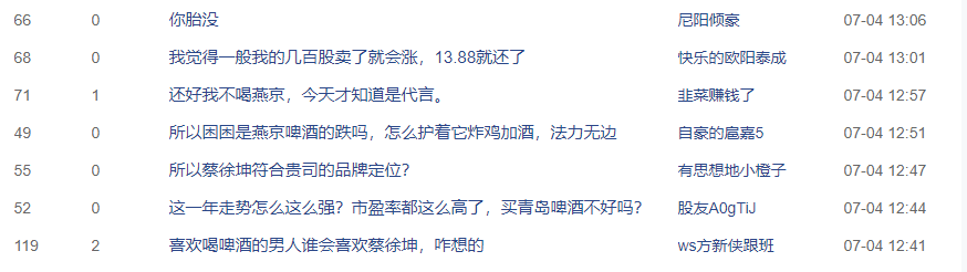可即便如此,面对广大股东投资者们实实在在的真金白银的亏损,上市公司也绝不能仅凭简单的一句“理智”回应来平息股民们的激动情绪。更不用说,在今年5月10日蔡徐坤升级为燕京啤酒全线品牌代言人时,就有投资者表示,“能不能别找流量明星,没作品根基都站不稳,容易踩雷,请来干什么?”