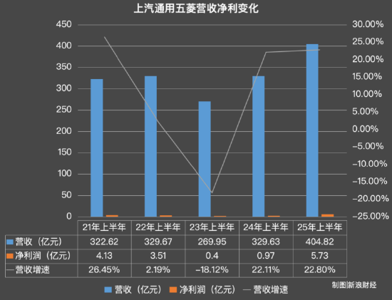 根据上汽集团今年上半年财报,2025年上半年,上汽通用五菱实现营业总收入404.82亿元,归属于母公司股东的净利润为5.76亿元,但净利率仅为1.42%,反映出公司盈利能力较弱。综合近5年的半年报数据,尽管上汽通用五菱集团营收和净利润近两年呈现增长态势,但整体营收增速则较为波动,并且整体净利率仍处于较低水平。