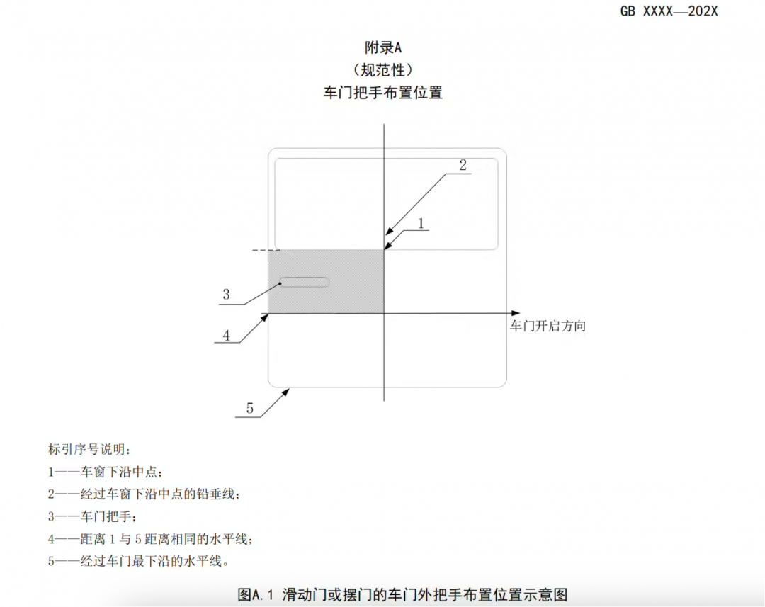 同时,每个车门(不包括尾门)应配置具备机械释放功能的车门内把手,应能在不借助外部工具的情况下,通过具备机械释放功能的车门内把手释放门锁并开启车门。若装备电动式车门内把手应同时配备具有机械释放功能的车门内把手,作为机械应急车门内把手。