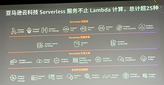 继2014年推出的Serverless计算服务Amazon Lambda后,目前已有超过25种Serverless服务。
