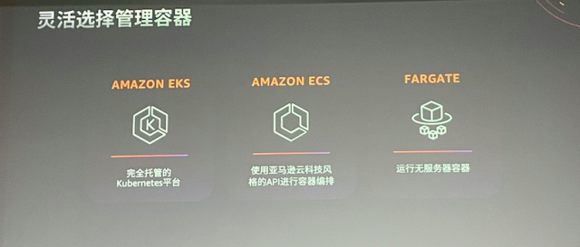 亚马逊云科技大中华区产品部计算与存储总监周舸介绍,仅容器编排服务,亚马逊云科技就提供三种完全托管的容器服务Amazon ECS、Amazon EKS和Amazon Fargate,客户可根据不同的技术偏好和业务需求灵活选择。Amazon ECS是亚马逊云科技自研的容器产品,与亚马逊云科技的其它服务深度集成。Amazon EKS让客户在亚马逊云科技上可使用 Kubernetes 轻松部署、管理和扩展容器化应用程序。Amazon Fargate让客户无需预置和管理服务器,专注于构建应用程序。