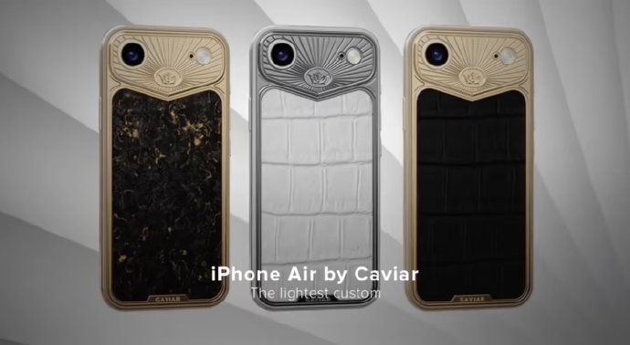 据报道,日前,Caviar推出AirLine系列,发布定制版iPhone Air,手机由黄金、航空级钛金属、鳄鱼皮等奢华材质打造。
