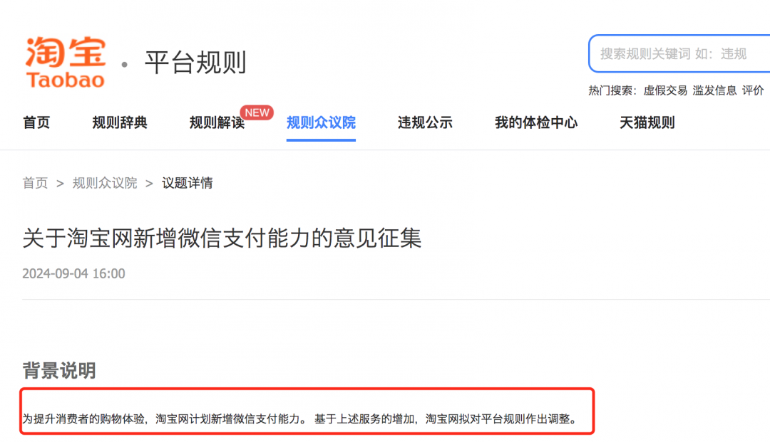【TechWeb】9月4日消息,淘天集团今日在商家平台发布意见征集,计划新增微信支付功能。有消息称,淘宝后续将面向所有商家签约,预计9月底全量上线该功能,届时消费者就可以在淘宝使用微信支付。