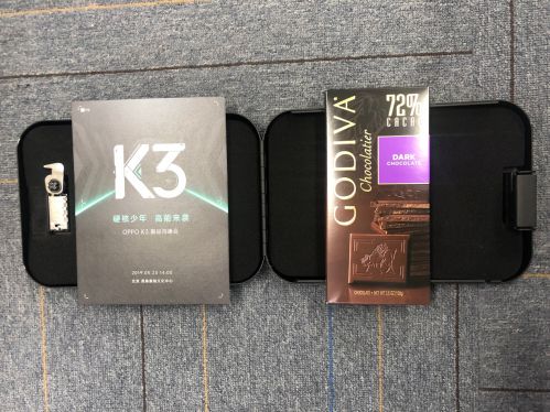 打开发现是冰袋配送的密码箱,结合K3发布会各种时间的尝试都没能成功,是oppo K3的炫酷邀请函。