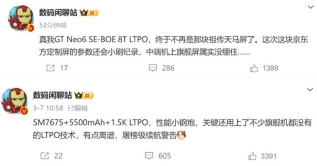 【Techweb】去年4月,realme真我手机官方推出了真我GT Neo5 SE,该机搭载第二代骁龙7+,同时行业首发100W+5500mAh百瓦超级续航组合,定位是全球年轻用户打造的潮玩电竞旗舰,一经亮相便受到了众多年轻用户的喜爱。而时隔一年后,新一代的真我GT Neo6 SE也即将与大家见面。现在有最新消息,近日有数码博主进一步带来了该机屏幕方面的更多细节。