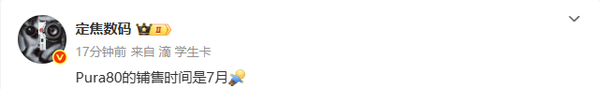 华为Pura 80系列或在7月开售:首发全新定制国产CMOS快讯