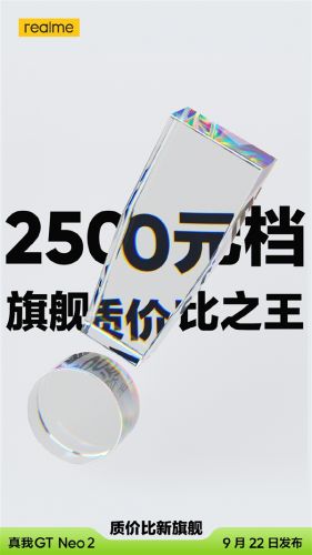 据悉,全新的realme GT Neo 2将于9月22日与大家见面,不出意外的话该机将会延续前作的高性价比策略,号称2500 元档旗舰质价比之王。更多详细信息,我们拭目以待。