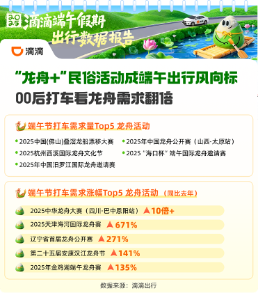 滴滴出行:端午假期打车需求上涨31% 00后打车看龙舟需求翻倍快讯