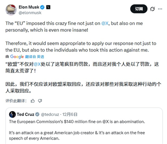 除马斯克外,美国政府也对欧盟此举表示谴责,认为其“特别针对美国公司”。美国前总统特朗普更直言,若欧盟持续惩罚美国科技企业,美国将考虑对欧盟加征关税,进一步激化了跨大西洋科技监管与贸易摩擦。