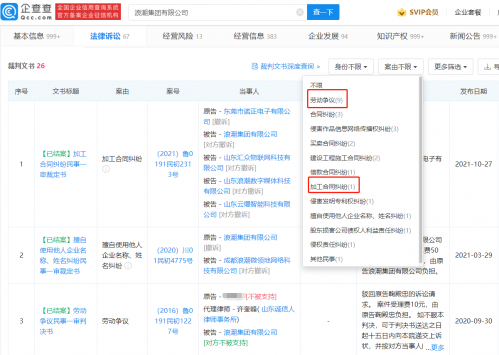 企查查显示,浪潮集团共关联近30项裁判文书,案由多为劳动争议,最新一件裁判文书案由涉加班合同纠纷。