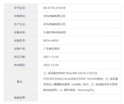 【TechWeb】虽然智能手机早已全面进入5G时代,各大手机产商的入门机型也标配支持5G网络,4G版新机已经非常罕见。但由于众所周知的原因,华为旗下支持5G网络的产品可以说是少之又少,即便顶级旗舰的5G版本也难以满足,令人遗憾。不过现在有最新消息,近日华为旗下一款新品获得了工信部的入网许可,出意外的话将归属于Mate 40系列。