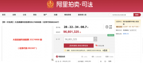 晨鑫科技第一大股东所持3517.49万股将于淘宝网司法拍卖快报