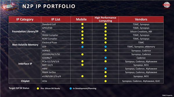 11月25日消息,据报道,台积电在其欧洲开放创新平台(OIP)论坛上宣布,N2P IP已经准备就绪,所有客户都可以基于台积电的2nm节点设计2nm芯片。