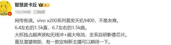 vivo X200系列将首发天玑9400芯片:正面硬刚骁龙8 Gen4和小米15系列快讯