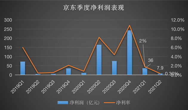 今年二季度,京东的营收保持增长,但增长相比较前几个季度开始放缓。同时,净利润大幅下滑,利润率表现不够理想。京东方面的相关解释是,由于对扩大就业规模、员工薪酬福利、技术研发和基础设施的持续投入,以及营销投入。