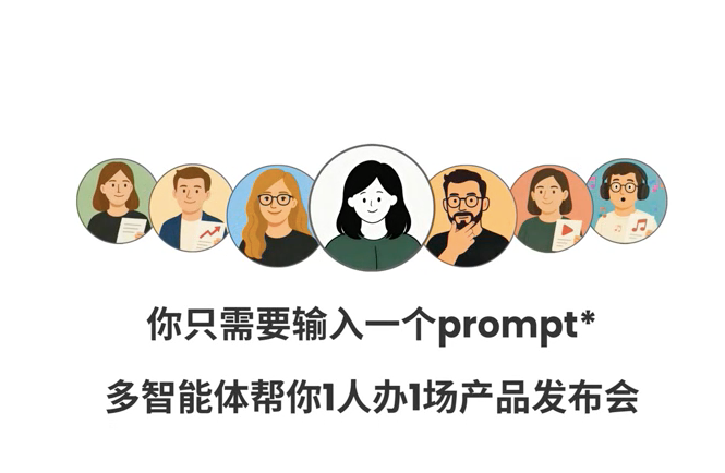 活动中展示了“平替市场部”与“平替HR”两大Demo,体现多智能体在跨部门协同、招聘提效等方面的应用潜力。