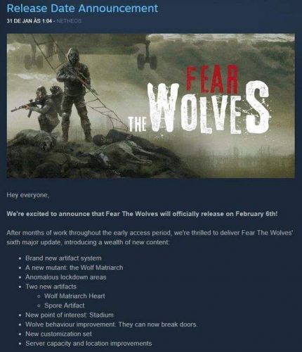 Vostok Games的官方Steam通告