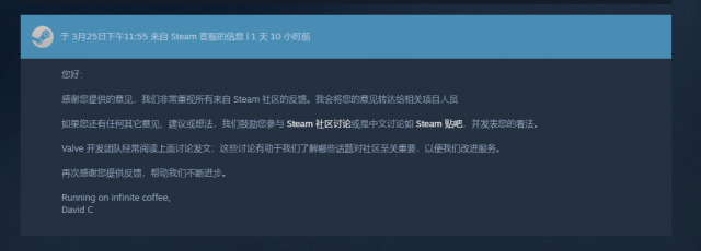 ·3月27日,某贴吧知名吧主晒出了和steam的交流信息,直接声称:“steam贴吧成为V社官方指定的Steam中文讨论社区。”一时间引发国内各大媒体纷纷报道,不过仔细看一下steam的客服回应,全是冠冕堂皇的礼貌回复用语,实际上并未明确表示“Steam与社交平台百度贴吧合作打造中文社区”事宜。