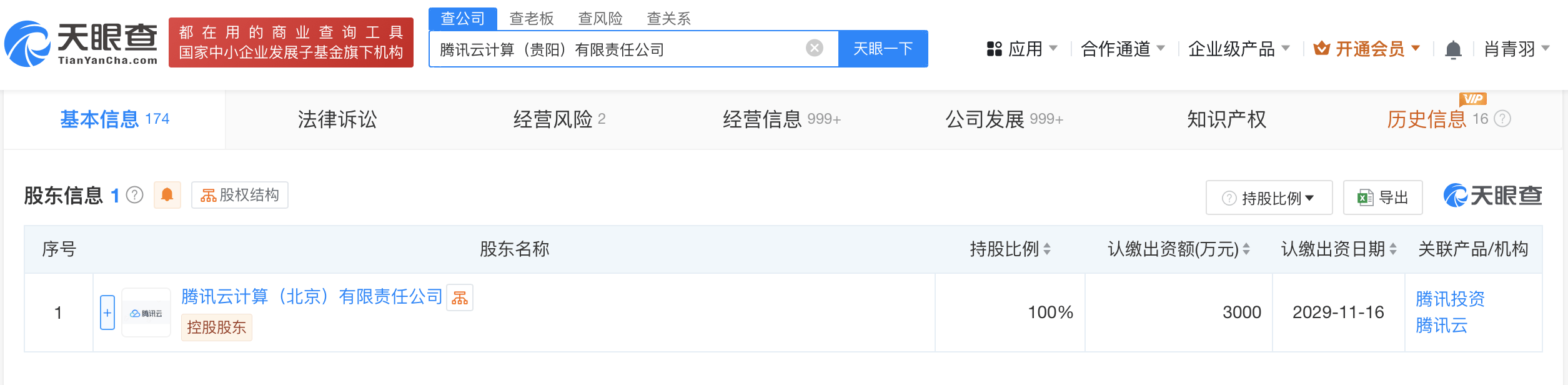 腾讯云计算(贵阳)有限责任公司成立于2019年11月,法定代表人为王前,注册资本3000万人民币,经营范围包括量子信息技术的研发、互联网信息技术咨询、信息技术咨询服务、应用软件开发、经营增值电信业务、计算机技术转让、计算机网络平台的开发及建设等,由腾讯云计算(北京)有限责任公司全资持股。