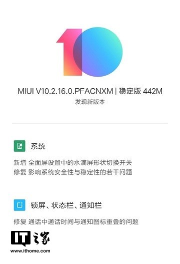 IT之家消息 小米9近日推送了MIUI V10.2.16.0.PFACNXM稳定版更新,本次更新重点对水滴屏做出了优化。