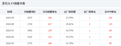 和智界S7使用相同平台,但是截至9月底,星纪元ES月销量都只有3位数,特别是下半年以来,月销500辆都已经是一关了。而智界S7的9月销量是2522辆。