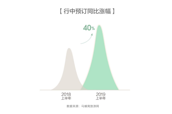 这一趋势也体现在旅游行为上。数据显示,旅行预订应用在网民中的渗透率为49.5%,年增长率达9.1%。报告还指出,2019年上半年,马蜂窝移动端的交易占比已达到94%,而据公开报道,这一数字在2017年为85%。行中预订量也同比增长四成,“随走随订”正成为更多人的选择。