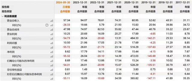 被剔除的主要原因包括盈利能力减弱、股价表现不佳及流动性不足等。过去十余年,汤臣倍健从2010年的3.46亿元营收一路攀升至2023年的94.07亿元,年均复合增长率(CAGR)高达28.92%。然而,如今的业绩表现表明,这一增长神话或将在2024年终结。第三季度,公司归母净亏损2241.65万元,与去年同期3.56亿元的净利润形成鲜明对比。这是上市以来首次出现季度亏损,令市场信心遭受重创。