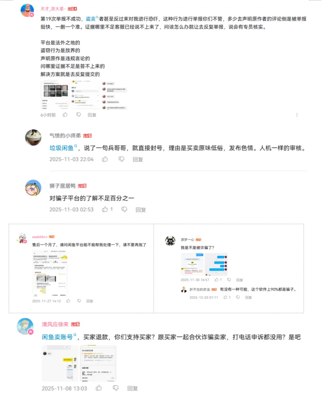 “闲鱼一生黑”也频繁出现在小红书甚至 B 站闲鱼官号评论区中。