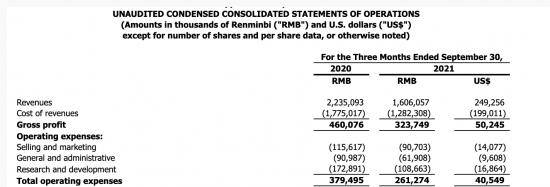 《螳螂观察》查阅财报数据发现,三季度华米科技的总营业成本为2.61亿元,与上年的3.79亿元相比,同比下降31.13%。其中,研发费用为1.087亿元,相比去年同期的7.7%有所下降;销售和营销费用为9070万元,同比下降21.5%。