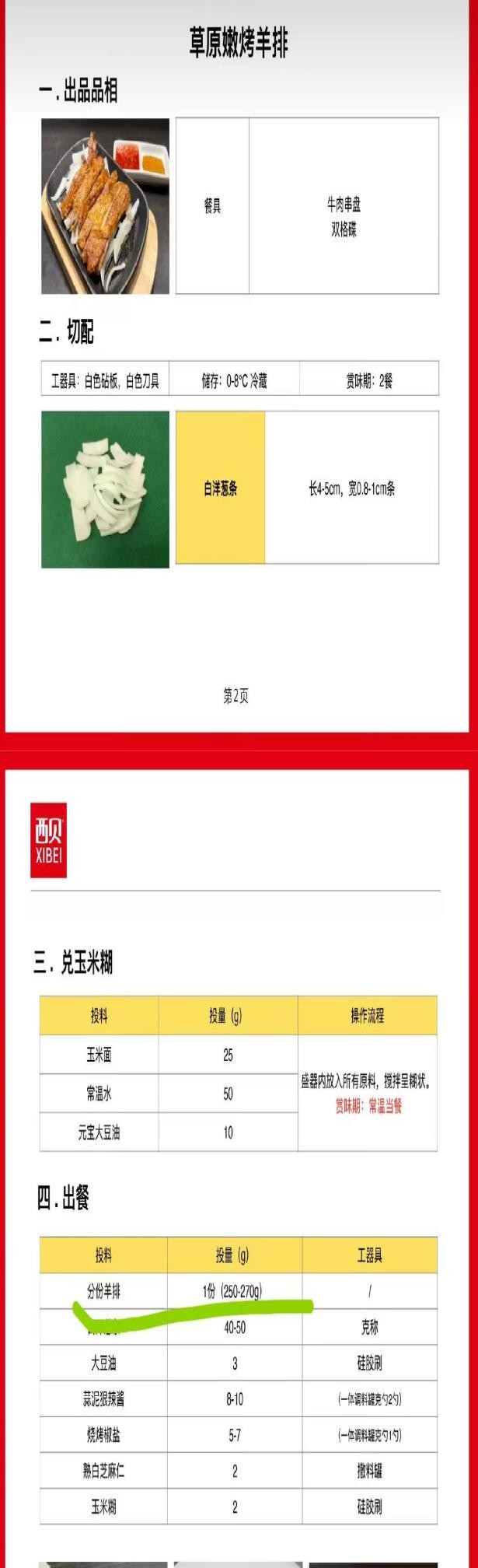 但在此前西贝团队回应罗永浩的一封信中,一份“草原嫩烤羊排”的投量是250—270克,售价为119元。