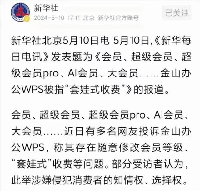 AI商业化落地难、“套娃式”收费薅羊毛,WPS正在“自毁长城”?快讯