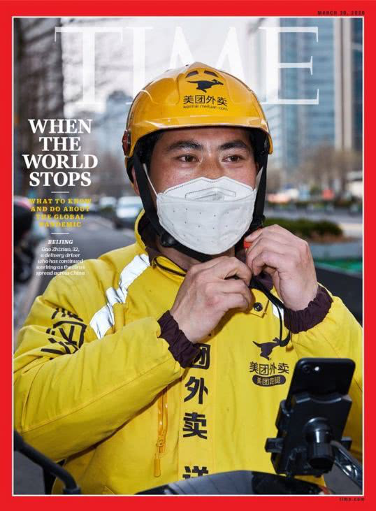 3月19日,美国《时代》杂志刊发关于抵抗疫情的报道,并把一个美团外卖小哥的照片登上杂志封面,配题为“当世界停摆时(关于全球疫情,我们要知道和要做什么)”,意即在疫情期间,他们维系了社会的正常运转。此前在2月23日,在武汉召开的国新办记者见面会上,同样的焦点放在了外卖骑手吴辉身上,他说:“……我们成了维系城市正常运转的‘摆渡人’”,他还说,只要他们在,武汉就不会孤独。