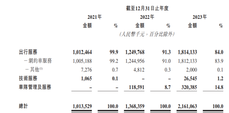 业绩方面,2021年、2022年及2023年,如祺出行总收入分别为10.14亿元、13.68亿元及21.61亿元,年复合增长率为46.0%;年内亏损6.85亿元、6.27亿元及6.93亿元。