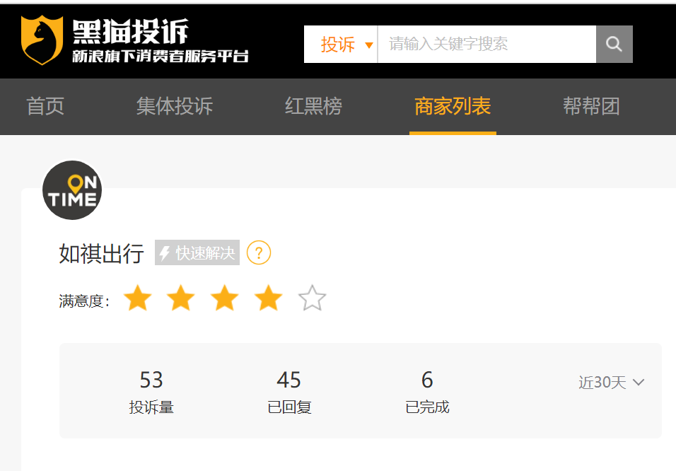 据黑猫投诉平台,如祺出行近30天新增消费者投诉53起,已完成6起,多涉及乱克扣司机费用问题。