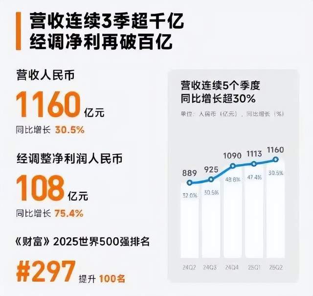 第二季度,小米集团总收入 1160 亿元,同比大增30.5%,连续五个季度创下历史新高;经调整净利润 108 亿元,同比增 75.4%。亮点主要集中在汽车业务上,单季交付 8.1 万辆、实现约 206 亿元收入,已经占到集团总盘子的近两成。