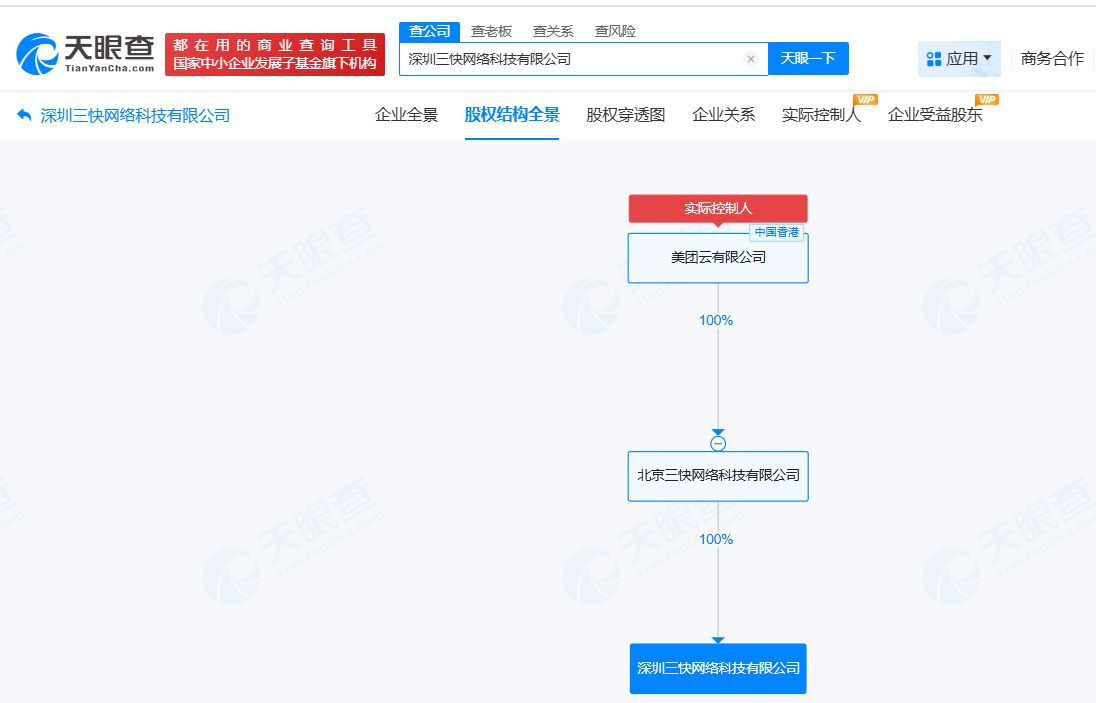 深圳三快网络科技有限公司成立于2022年4月,法定代表人为刘彦斌,经营范围包括信息系统集成服务、软件开发、软件销售等。股权全景穿透图显示,该公司由北京三快网络科技有限公司全资持股,后者为美团云有限公司的全资子公司。