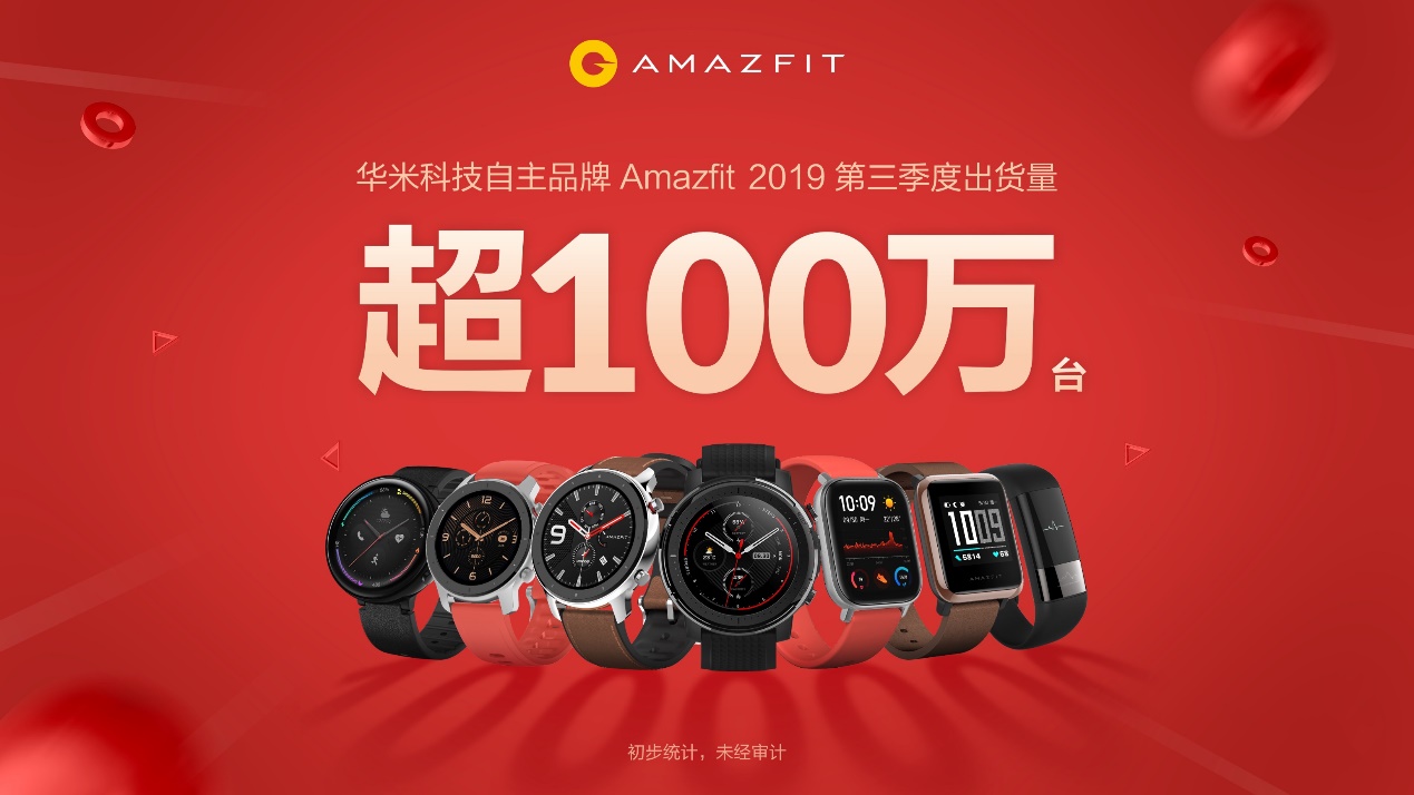 2019 年 10 月 21 日,全球领先的智能可穿戴设备公司华米科技(NYSE:HMI)正式宣布旗下 AMAZFIT 品牌产品 2019 年第三季度的出货量达到 100 万台。