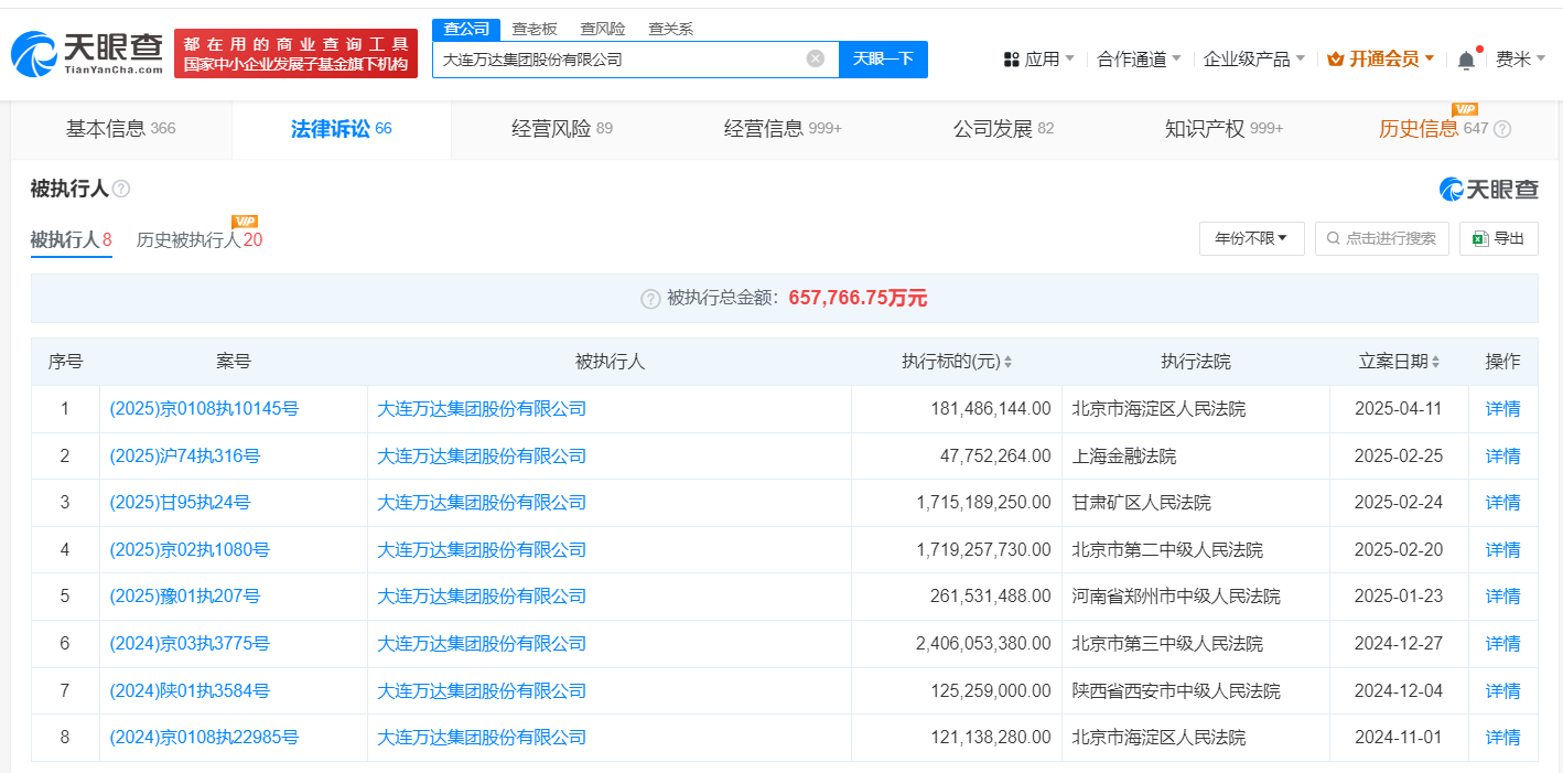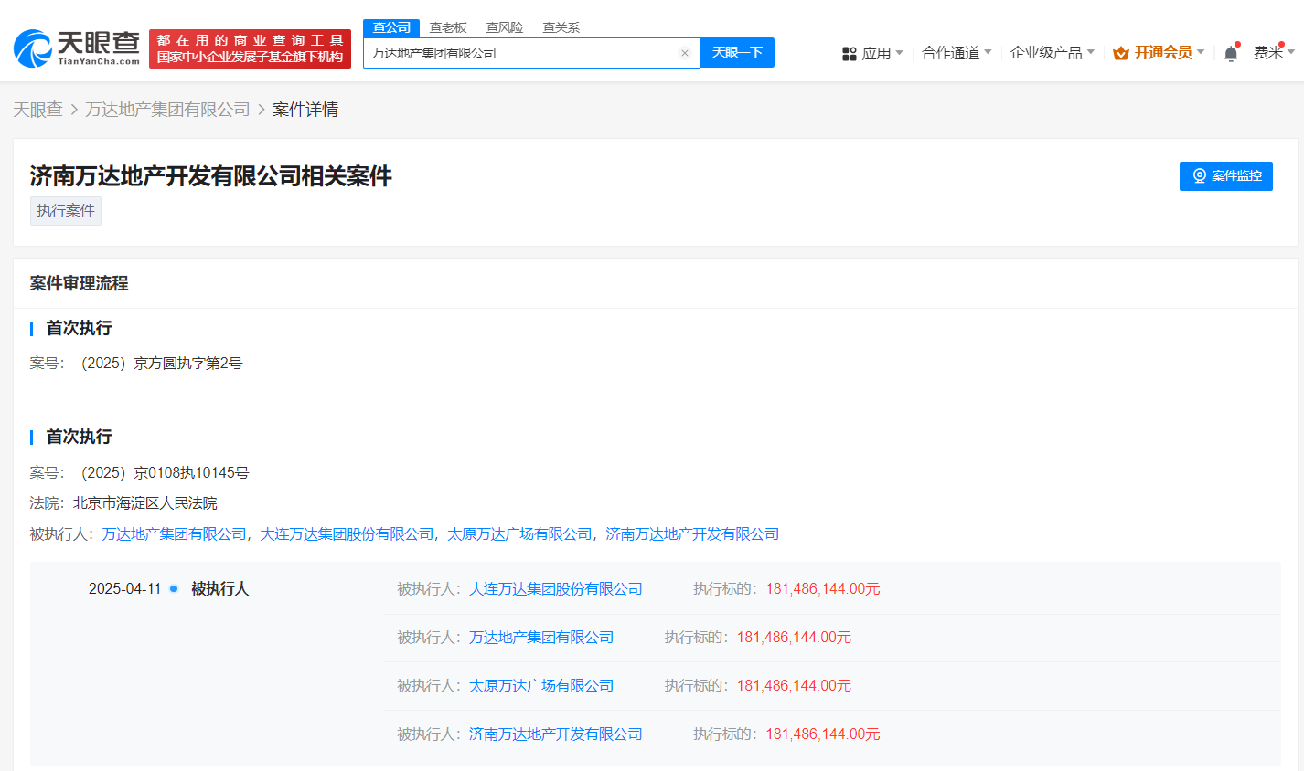 天眼查法律诉讼信息显示,近日,大连万达集团股份有限公司、万达地产集团有限公司等新增一则被执行人信息,执行标的1.8亿余元,执行法院为北京市海淀区人民法院。