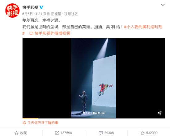 而截至8号18点20分,在@快手影视官微上,该视频被转发近18.76万次,获赞约53万。
