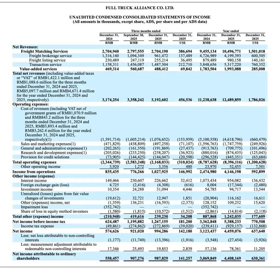 2025年第四季度,满帮营收31.93亿元,同比仅增长0.6%,基本没动。全年净利润涨了四成多,这利润是怎么变出来的?