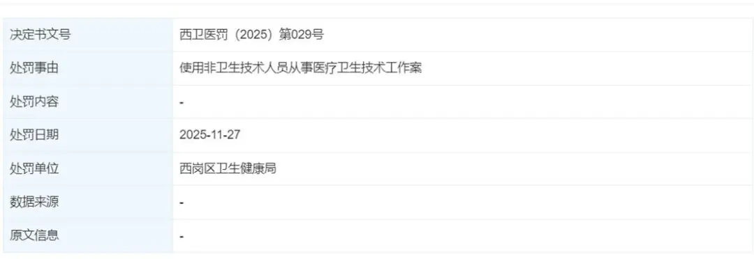 但现实却恰恰相反,2025年12月27日,大连艾加艾医美因为重大违规行为,将自己推向了舆论的风口。据大连市卫生健康委员会公开通报,大连艾加艾医美因使用非卫生技术人员从事医疗卫生技术工作被依法处罚。根据《医疗机构管理条例》第四十七条,该行为属于严重违法,直接威胁患者安全。