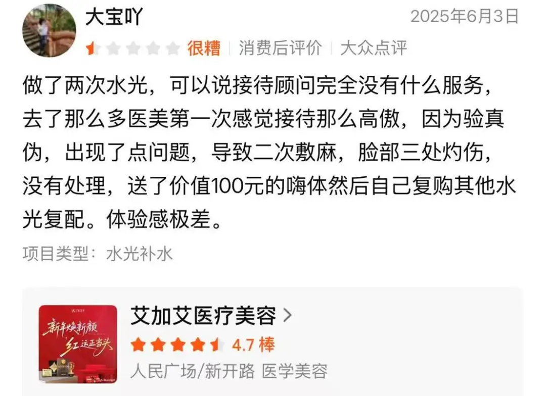 在各大消费平台,不少消费者连喷大连艾加艾医美术后效果差,做完比没做还崩。