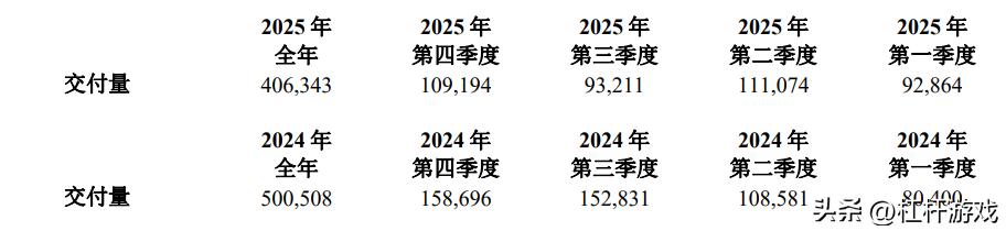 2025年,理想汽车全年新车交付40.63万辆,较2024年50.05万辆的交付规模同比下滑近20%。